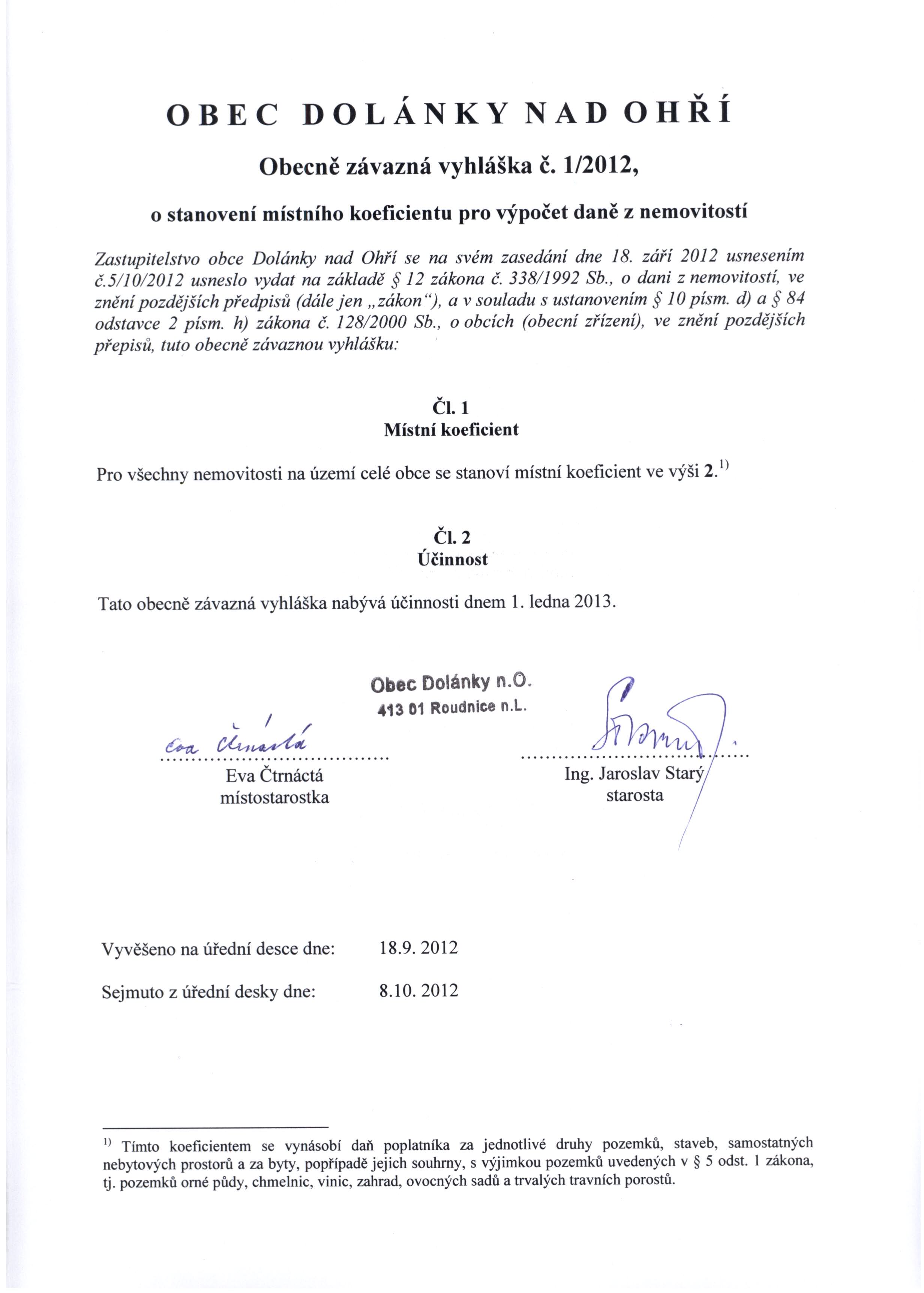 - zákon č. 72/2012 Sb. – O obcích - změny z r. 2012